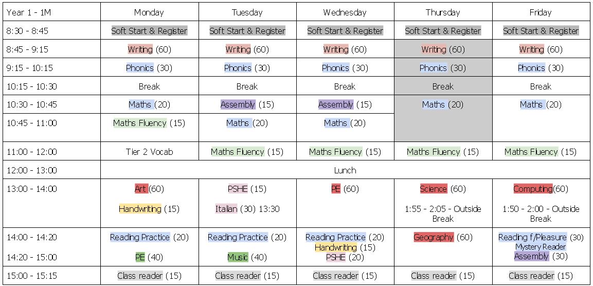 Both 1C and 1M have PE on Monday and Wednesday and will need to be in their PE kits on these days. Please dress your child in their PE kits on both of these days, they do not need to change into their uniform after.